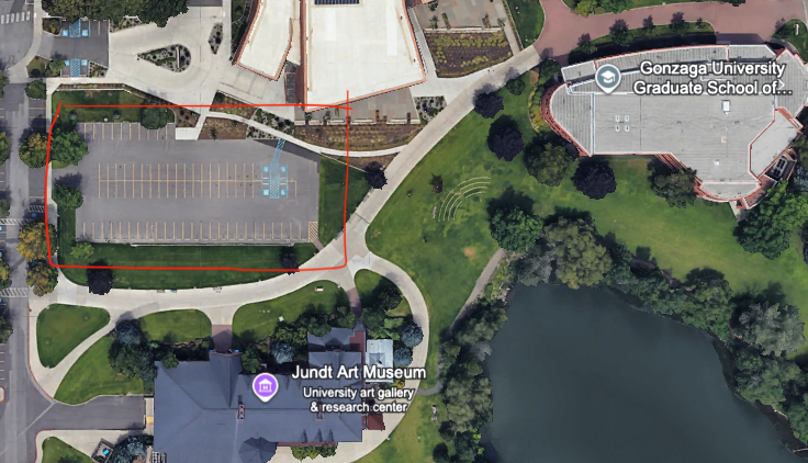 Gonzaga requires permits but will be relaxed on a single parking lot for the event. Park at the parking lot just north of the Jundt building at Gonzaga University. Use this link for Google maps. The venue is a little walk to the right of the parking lot. For more guidance, review the images below.
